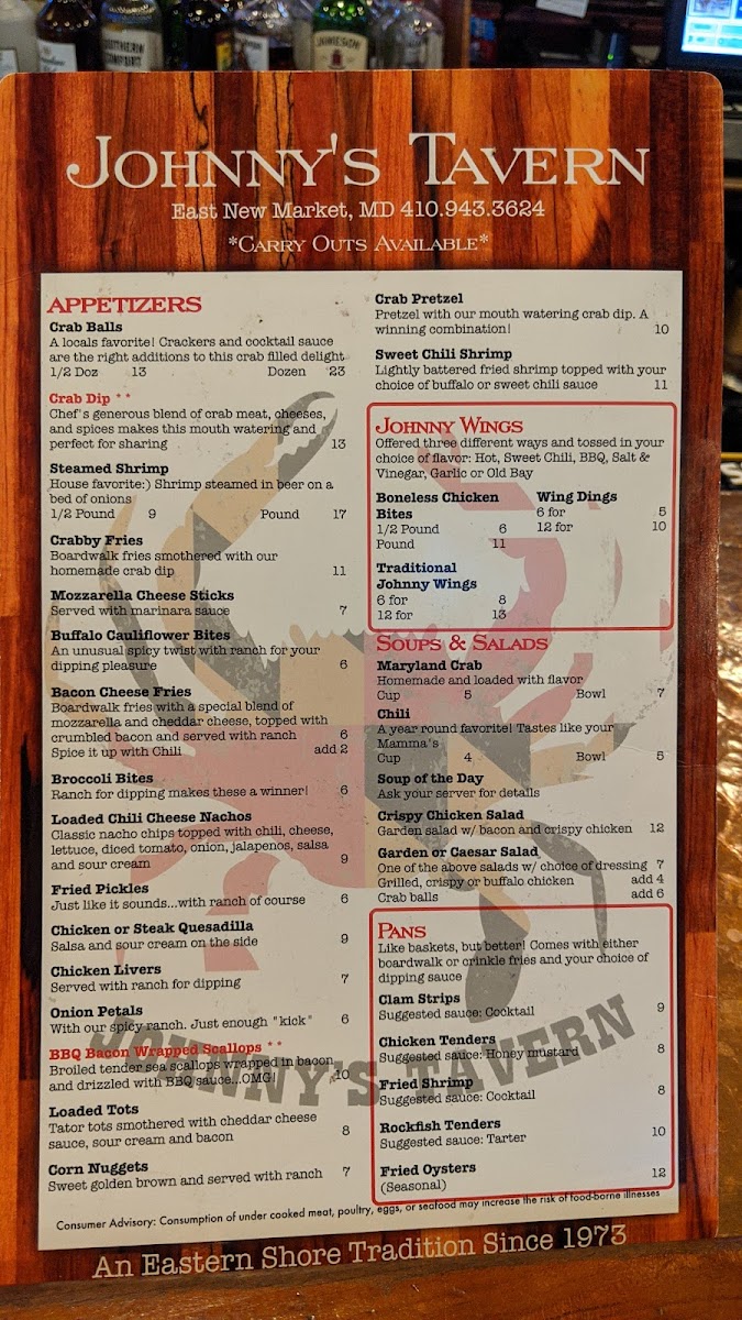 Welcome to Johnny's Tavern, a local gem nestled at 39 Main St in East New Market, MD! This inviting establishment offers a diverse menu that caters to all cravings, making it an ideal spot for a casual lunch or a fun evening out.